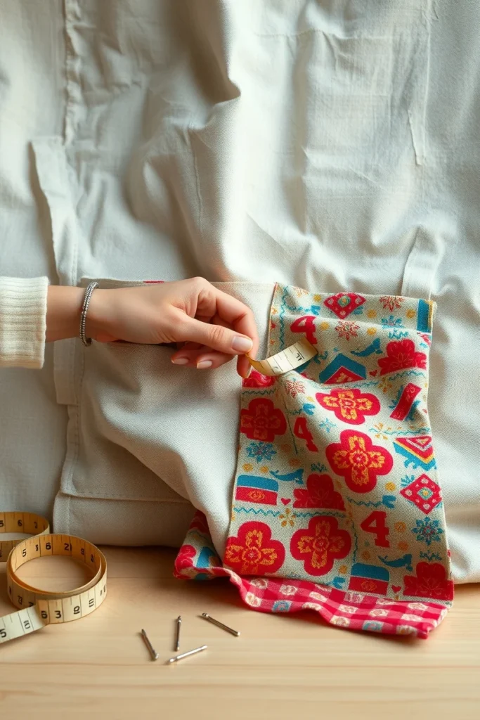 Fold pocket edges under half an inch. Press with an iron. This prevents fraying and gives clean lines.