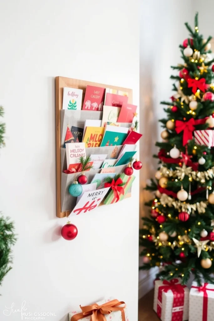 Creating festive wall organisers transforms holiday chaos into organized display. Your hanging wall organizer clears surfaces while adding seasonal charm.